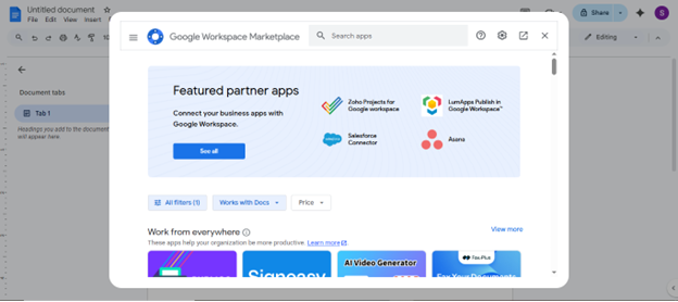 Step 4: The Google Workspace Marketplace will open.